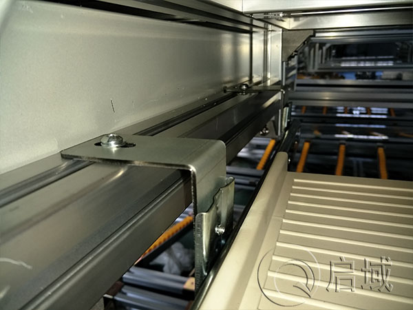 大家來看這張圖,抽屜上面自帶的伸縮桿有折彎的連接件,專門與型材連接的,這是連接細(xì)節(jié),只用螺栓螺母與工業(yè)鋁型材直接連接就可以,安裝效果如圖看到的。