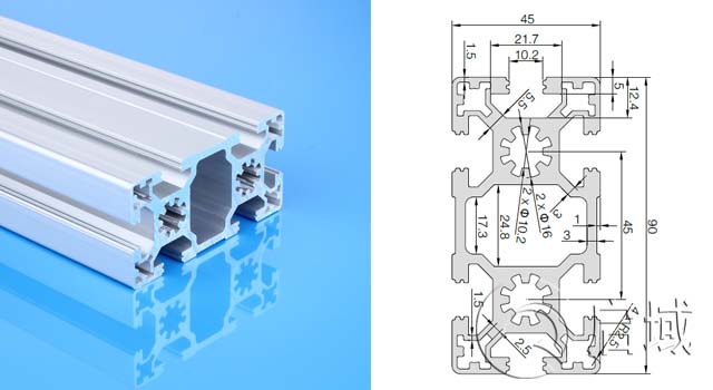 型材貨號:QY-10-4590W(45*90歐標重型,槽10系列)應(yīng)用說明:廣泛應(yīng)用于大應(yīng)力、高強度、支撐要求高的重載結(jié)構(gòu)的框架組合,是工業(yè)框架應(yīng)用廣泛的型材之一。配套螺栓螺母:它通常采用45系列M8專用T型螺栓與M8法蘭螺母內(nèi)部連接,或用45系列T型螺母與內(nèi)六角螺栓配套使用,如受力強度大可采用45系列滑塊螺母與內(nèi)六角螺栓配套使用,堅固可靠結(jié)實。